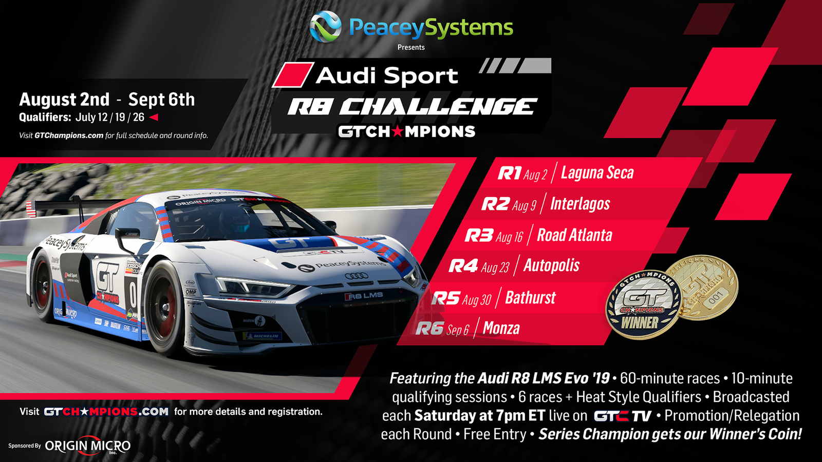- Drivers will have a chance to win one of the unique GTC Winner’s Coins for the championship.