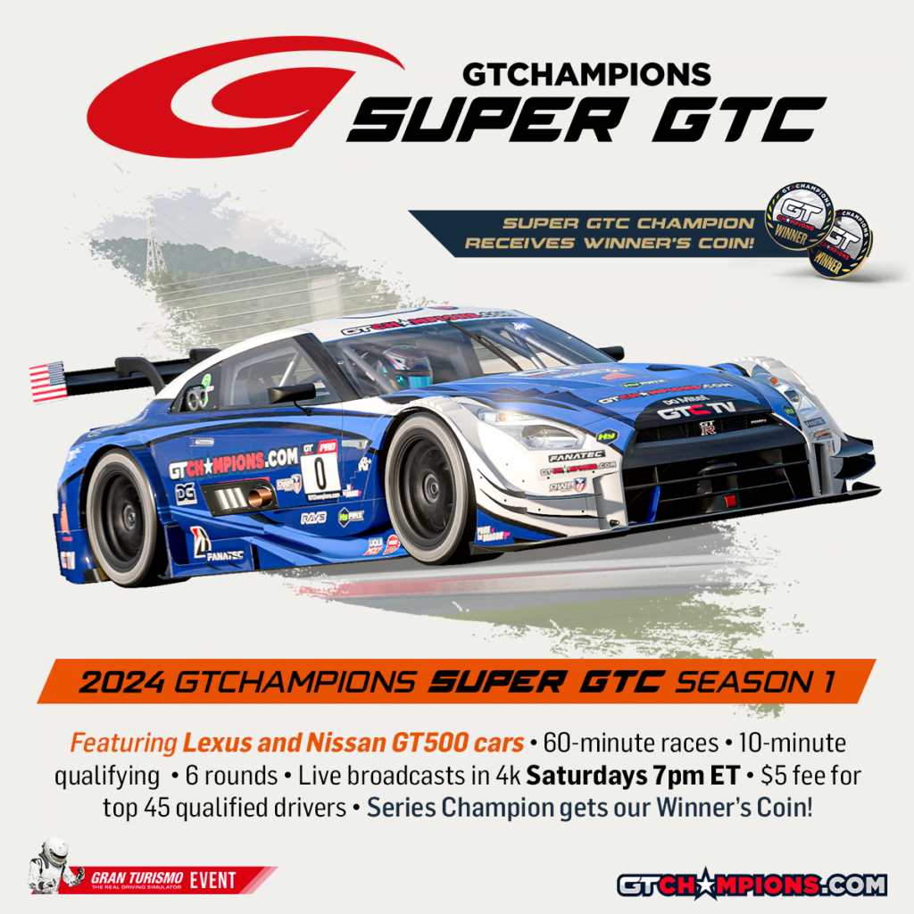Welcome to the next Gran Turismo 7 series hosted by GT Champions! Join us for the Super GTC, a 1 hour, 6 round series in the Gr.2 Lexus RC F and Nissan GTR. Check out all the details and fill the form to register!